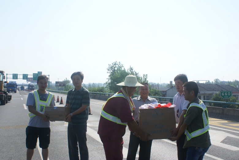 連日來,氣溫節(jié)節(jié)攀升,酷暑考驗著堅守在合六葉高速公路養(yǎng)護工程施工一線的職工。8月8日上午,公司領(lǐng)導及工會一行帶著毛巾、花露水、洗發(fā)液、香皂,急救藥箱及防暑降溫物品來到高速公路施工現(xiàn)場,親切慰問在烈日下仍辛勤地工作在工程施工最前線的一線職工??偨?jīng)理萬世林詢問了他們在高溫天氣下的工作、生活情況,叮囑職工在當前持續(xù)高溫的不利條件下,安全做好工作的同時,注意休息,勞逸結(jié)合,合理調(diào)整工作作息時間,采取有效的防暑措施,安全順利地度過高溫季節(jié),保質(zhì)保量的完成施工任務(wù)。